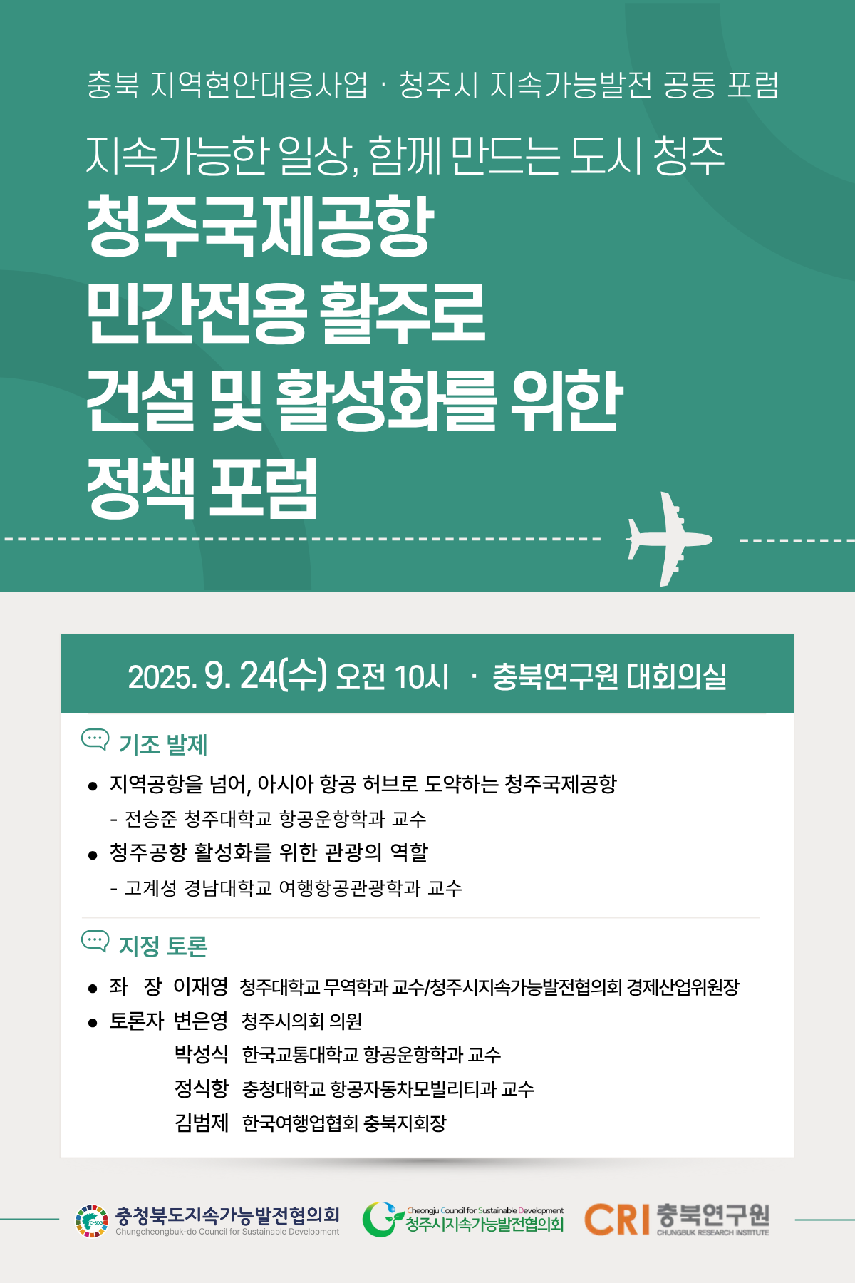 청주국제공항 민간전용 활주로 건설을 위한 정책포럼 개최