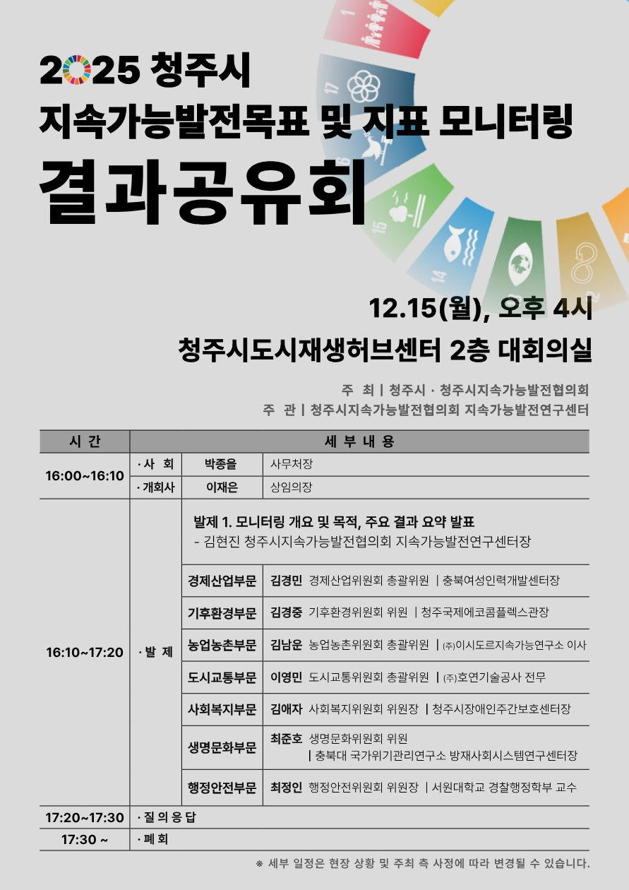 2025 청주시 지속가능발전목표 및 지표 모니터링 결과공유회를 개최합니다!
