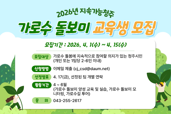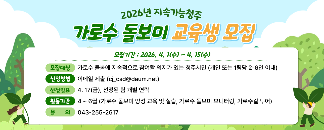 2026년 지속가능청주 가로수 돌보미 양성 교육생 모집공고 2026.4.1